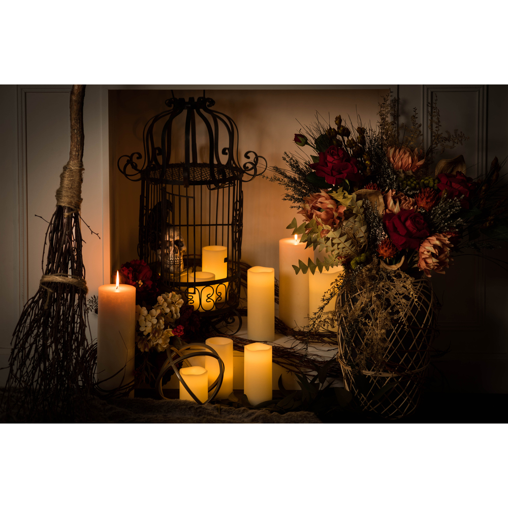 This arrangment gives the perfect fall and Halloween look into one. By pairing it with black elements can create a spooky fireplace hearth to be the center of the Halloween spirit.