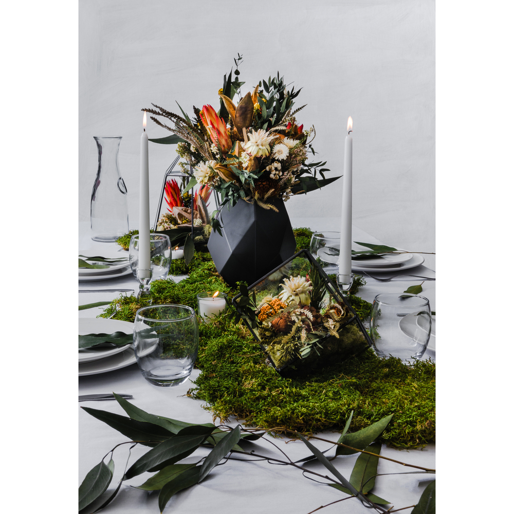 This vibrant spread of Natural Botanicals keeps class and elegance while bringing contrast to a bright wedding. The textures of these natural floral items are a beautiful addition to any tablescape.
