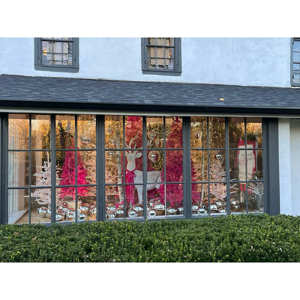 Vickerman’s is always at the top of our list for the finest selection of shatterproof ornaments in the most amazing array of sizes and colors ever! Black-eyed Susan is well known for our #falalalafabulous display windows year round, but we go all out for our holiday windows and Vickerman’s is our go to vendor for the drama! Always planned and purchased in January, we can count on expert offerings and professional help to make the plan. Let’s just say we are great friends by the time we leave the showroom! 2023 finds three sizes of hot pink trees (our signature color!) from 9’- 4’ in height leading the design, surrounded by bright silver shiny shatterproof ornaments suspended in sizes 12"" - 6” with the perfect placement, then packed the floor with dozens of the same! My windows have been known to cause a minor accident during the Holiday season, but we don’t hold Vickerman responsible. It’s definitely an #ohsosusan 2023 Christmas!