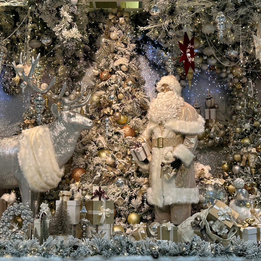 I created an unprecedented luxuriuous and glittering Christmas space that symbolizes the Christmas tree. White, silver, champagne gold, and rose gold create colors create a sophisticated world and emphasize the fun and joy of everyone gathering.