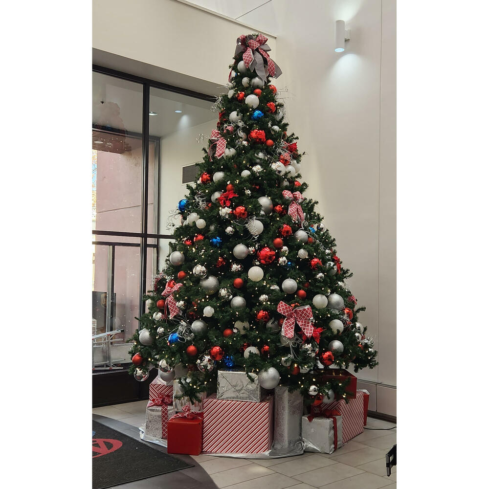 With a touch of red, blue, green and gold, Lisa has delivered a beautifully decorated Tree with a cheery and uplifting theme. The second design features golden ribbon bows and silver and gold balls to offer a bright and warm tree.