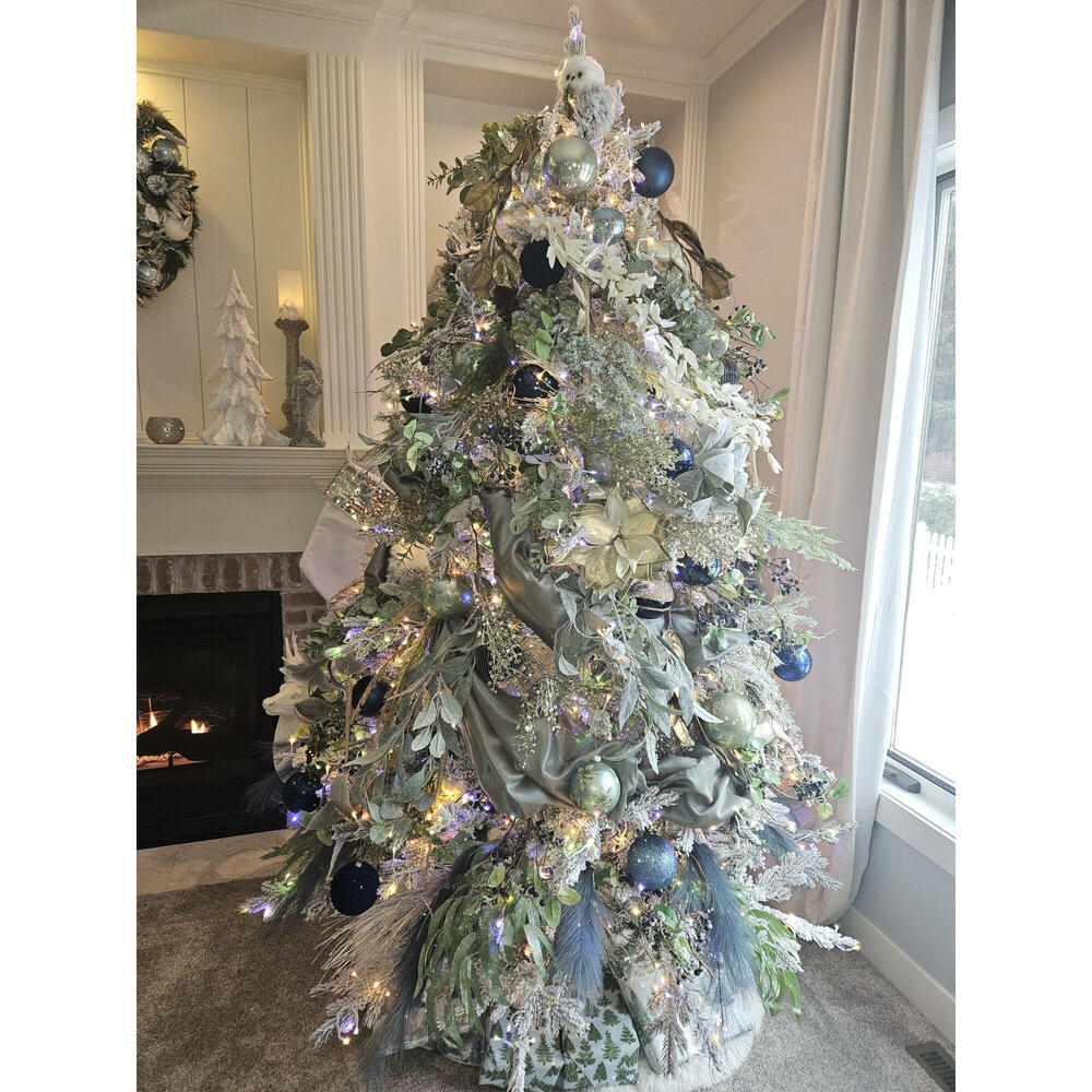 Peaceful and calming tree to look at. The whole room in the picture has a peaceful winter forest theme. The tree has owls, deer, blueberry branches and frosted leaves adorning it. The rest of the decor in the room pulls it all together. Your beautiful & elegant frosted tree inspired the whole look. The tree changes colors, so I included pictures showing the difference those colors make in the room. Most beautiful Christmas tree I have ever owned, thank you.