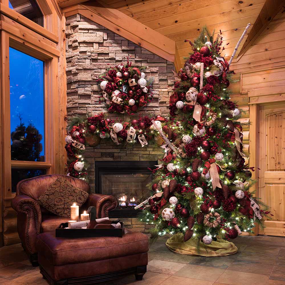 The Cabin Fever look embodies a cozy and rustic charm. Everything from the Wisconsin harvested birch poles to the authentic burlap is calming and simplistic, but combined you get an elegance that is breathtaking. Being a Minnesota based company we have a soft spot in our hearts for the rustic cabin feel which can be seen in many of our products. The combination of the Noble Instant Shape tree with a long need Mixed Mountain Pine Spray blends perfectly with the birch ornaments and the rich burgundy color palette, giving you a feeling of warmth and comfort like being wrapped in a giant lumberjack flannel shirt. 457745