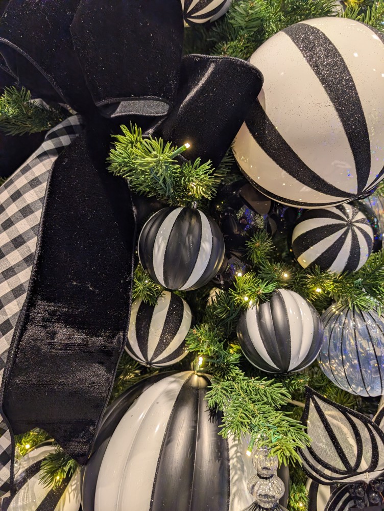 Bold and sophisticated, the Noir & Blanc Holiday Tree showcases classic contrast reimagined through a modern holiday lens. Designed by the Vickerman Design Team, this striking tree pairs deep black elements with crisp white and gleaming metallic accents to create dramatic visual impact. Oversized ornaments and rich textures work together to deliver a cohesive, fashion-forward look that feels both timeless and contemporary, making it a standout seasonal statement for upscale residential and commercial spaces alike.