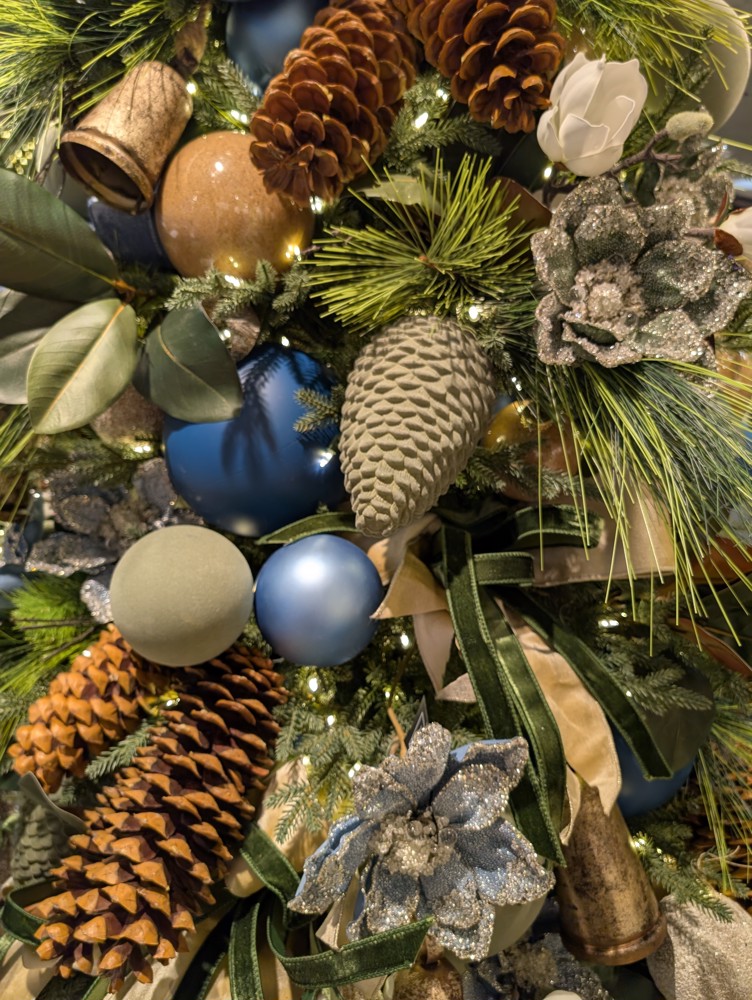 Inspired by the timeless beauty of Southern magnolia, this Southern Magnolia Holiday Tree blends rich green tones with warm gold accents to create a refined and welcoming seasonal statement. Layered with soft flocked textures, antique gold bells, and natural pinecone elements, the design evokes traditional holiday charm with an elevated, curated feel. Perfect for both residential and commercial spaces, this tree captures the warmth of the season while offering a polished, enduring aesthetic rooted in classic Southern style.