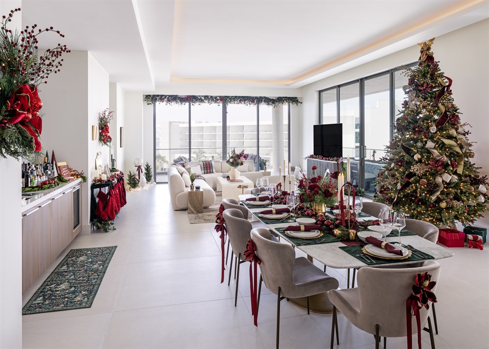 This luxury holiday install was designed for a family celebrating their first Christmas in their new residence at the iconic St. Regis on Longboat Key. The brief? To create a setting that felt like it belonged in a Hallmark movie — magical, warm, and filled with tradition — but elevated to match the modern architecture and coastal luxury of their new home. The design leans into a classic palette of rich reds, deep greens, and warm golds, layered with lush florals, soft candlelight, and curated moments of nostalgia. Every detail — from the velvet ribbon-tied dining chairs to the fully styled hot chocolate bar and custom tree — was crafted to spark joy and celebrate new traditions in a brand-new space. A signature feature of the project is its flow — holiday styling moves seamlessly from dining to living, creating a cohesive experience where no corner was overlooked. It’s a true lifestyle installation, designed not just to look beautiful, but to support real holiday memories: entertaining family, toasting by the bar, unwrapping gifts under a tree that glows with intention. This install embodies the heart of Hallmark: not overdone, not theme-park — but deeply personal, polished, and joyfully abundant.