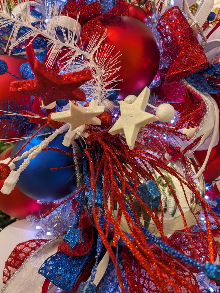 Designed by the Vickerman Design Team, the American Celebration Holiday Tree brings bold, festive energy with its vibrant red, white, and blue palette. Star sprays, shiny and matte ball ornaments, and layered textures create a dimensional and dynamic look that captures attention from every angle. Perfect for spaces seeking a cheerful and visually striking seasonal display, this tree blends bright color, thoughtful detailing, and a playful patriotic-inspired theme into a standout holiday centerpiece.