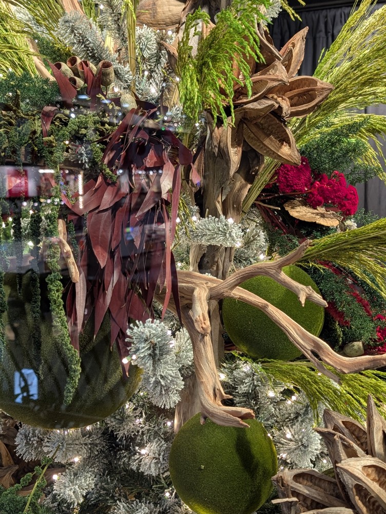 Designed by the Vickerman Design Team, the Woodland Luxe Tree is a rich and textural holiday centerpiece. Lush greenery is layered with mossed ball ornaments, red floral accents, and natural elements like mushrooms and pods, creating depth, dimension, and a sophisticated organic look. Perfect for residential or commercial settings, this tree blends natural beauty with festive elegance, offering a luxurious and refined seasonal statement that celebrates the textures and colors of the woodland.